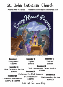 Thank you for your continued support of the ministries at St. John Lutheran Church, Defiance, Ohio.